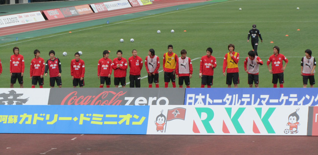 でもね。目の前のピッチに練習のために出てきた赤馬衆はもうすでに戦闘態勢。それを見て、自分の中のサポ魂もシャキッと目覚めた気がしましたよ!