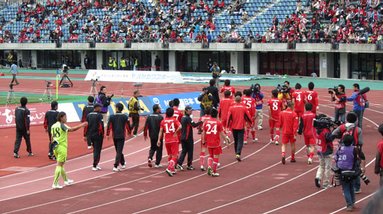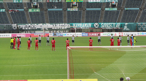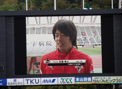 そしてDJ.KOVAの音頭で、スタジアム全員でニッポンコール。震災後初めてベアスタで鳥栖とチャリテTMに臨んだ時以来。ちょっとだけ胸が詰まる感じがしました。
