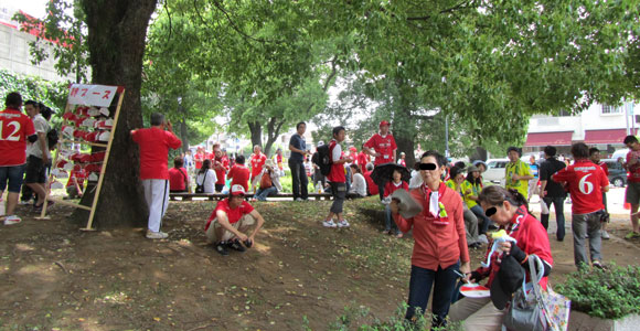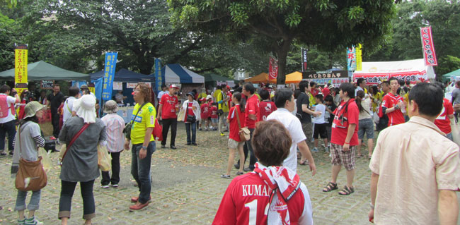 もう幾つ寝ると夏休み♪としか思えない暑さと湿度とも戦った千葉戦でした。でも水前寺競技場は木々が茂って赤と緑のコントラストがすごく綺麗。