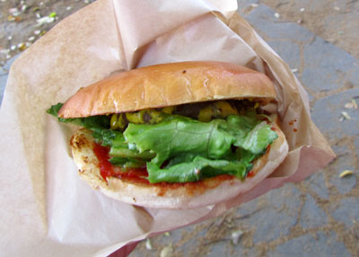 焼き立てが大人気の阿蘇赤牛バーガーです。二つ買うとお値段2割引が嬉しい。