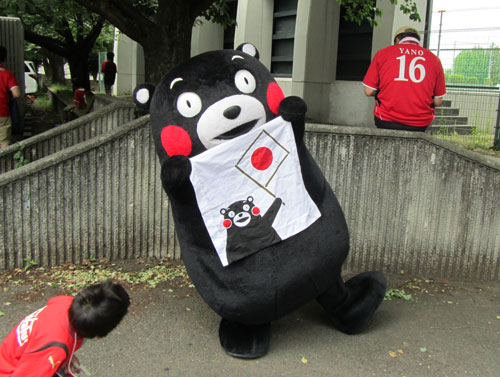 サポ同志Pさん作のくまモンゲーフラを持ってパシャ! ゲーフラすごく良くできてたーPさん超器用〜!