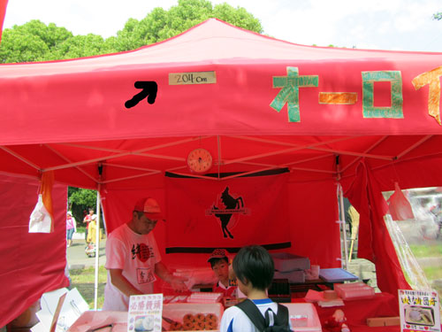 かんしょやさんもテントにオーロイくんの高さ表示です。たっかいわ〜!
