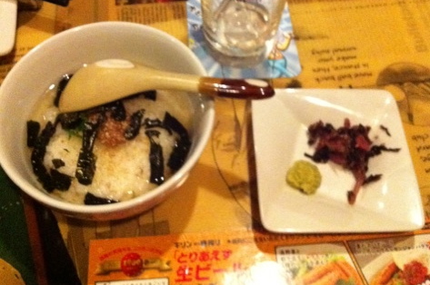 打ち上げの一食。応援でエネルギー使い果たしたけど結局梅茶漬けでお腹いっぱい。