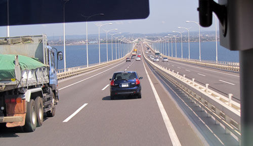 アクアラインを一直線。正直、余震が起きないかちょっぴり心配ではありました。