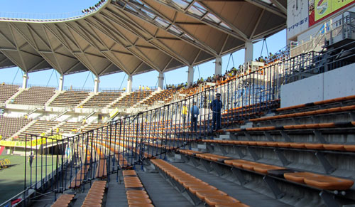 これは初めてお目に掛かりました。ホームとアウェーの観客席を分ける鉄柵。