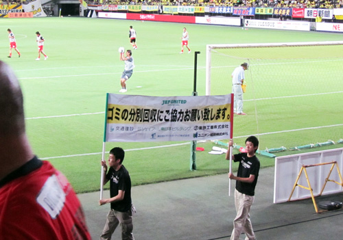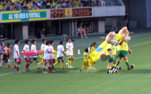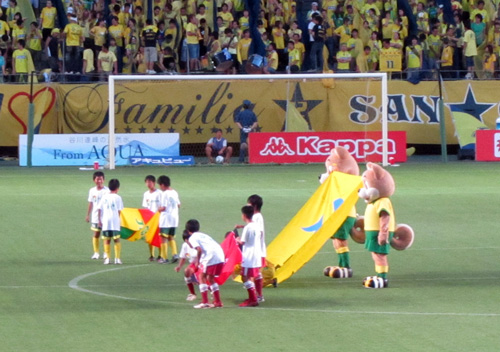 双方のチームフラッグも一緒に入場してきました。これはよい試みだなあ。