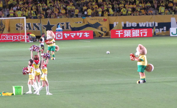 試合中は、それもあちらの後押しコールの一種かと思ってたんだけど、帰宅してスカパーの録画を見たら、中継アナが「同じ千葉でもある柏レイソルとの試合でGK南選手に何度も止められたから」と言ってました。