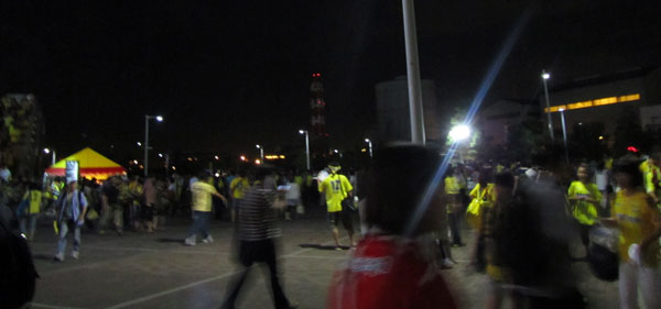 スタジアムをデルと当然のごとくジェフサポさんで溢れかえってます。この真っ只中を進むロアッソサポ数名でホテルまで帰ります。