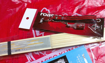 ロアッソしろストラップは2011バージョン。扇子には銀しろのイラスト付き。ありがとうございました♪