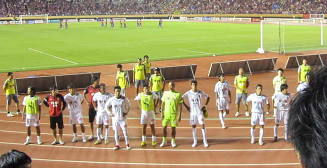 スカパーの放送を意識しているとしか思えない時間帯(笑)。そしてリングアナみたいな横文字読みでの選手紹介がこそばかったわぁ。「タダッヨ・フックオウ!」……( ̄ェ ̄;)