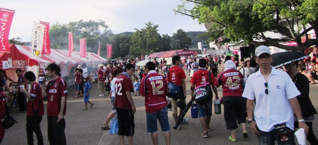 歩いてカンコースタジアムへ。暑かったけど他所の土地を歩くのは楽しい。道中にあるファジアーノオリジナルショップがすごく羨ましかったです。これは熊本にも早く欲しいよね。