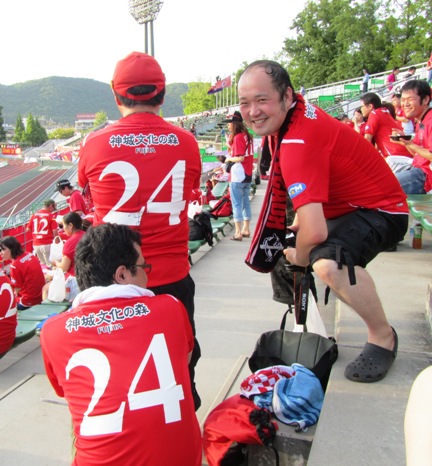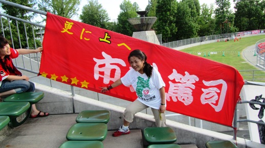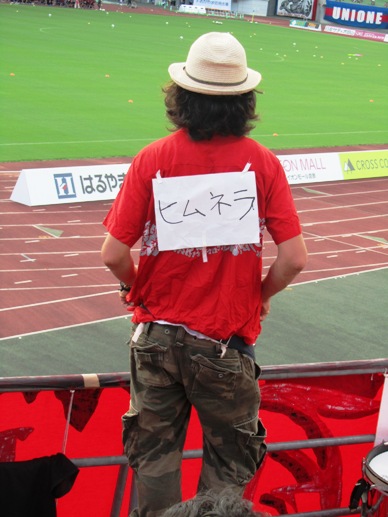 団長さんの背中の張り紙に書いてある「ヒムネラ」って何?と思ったそこのアナタ……大分戦で隣の人に教えてもらってください。