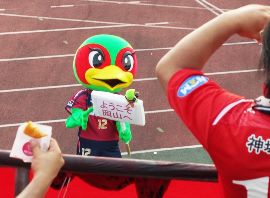 ファジ丸くんがご挨拶に来てくれた。なんとなく去年より動きがシャープで愛想よくなってます。マスコットとして成長してるねっ(^_^) 熊本サポは絡みやすいと思うのよ~(笑)。