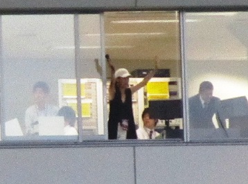 この方、バルセロナとアトランタのオリンピック女子マラソンでメダル獲得した有森裕子さんです。貴賓席から身を乗り出してのマイクパフォーマンス。かっこ良かったです。