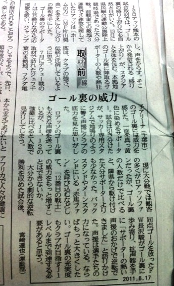 あまり四角四面に解釈しなくても、ゴール裏が楽しいから応援するでもいいし選手の挨拶が見られるからでもいいし、好きな子がいるからでもいいし、今日だけここで見ようでもいっこうに構わないと思ってます。