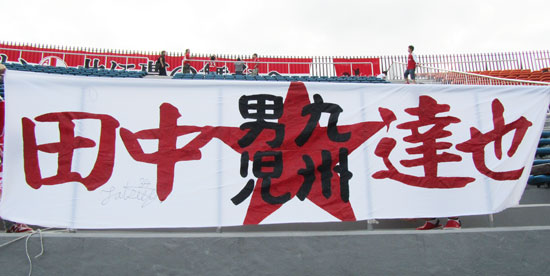 本日デビューなるか!というロアッソ熊本のタナカタツヤくんのステキな選手幕です。