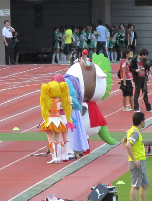 他のチームと違ってゆるキャラ系があまりいないと思ったらメインスタの下に固まってました。