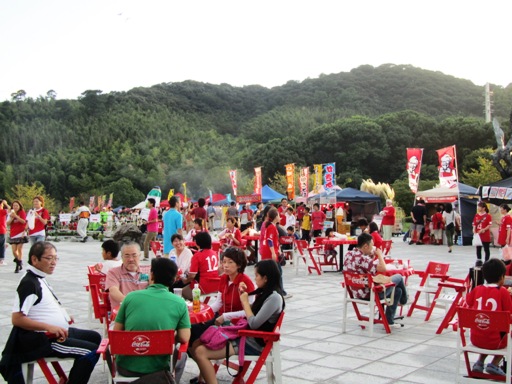 サイン会での助っ人も終えるとDJKOVAの選手紹介の声が響いてきました。そろそろゴール裏へ参ります。