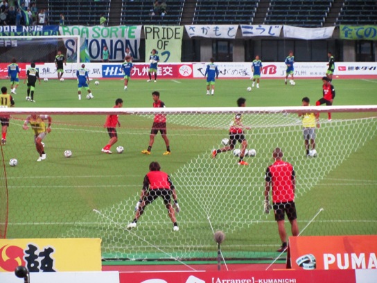ゴール裏に辿りついたときにはもう選手紹介も終わって試合前練習の最中でした。