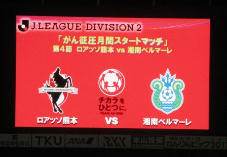 キックインセレモニー。今節はがん征圧月間マッチということでエライ方がキックイン。