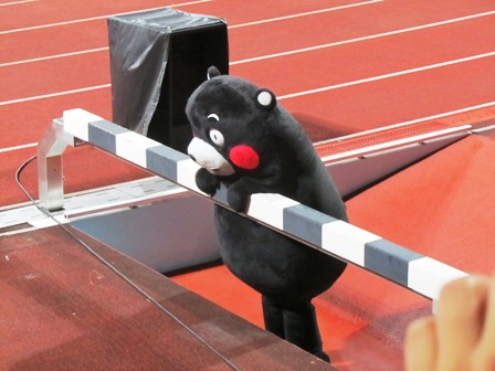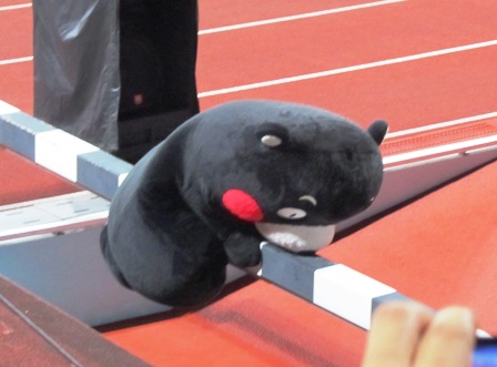 いつまでたってもロアッソくんが来ないので一人でゴール裏パフォ。障害走のハードル見ながら思案中。