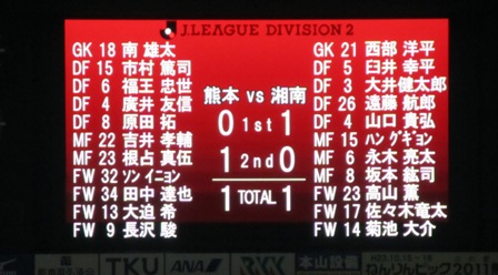 久しぶりに0のないホーム大型ビジョンの我がチーム試合結果。