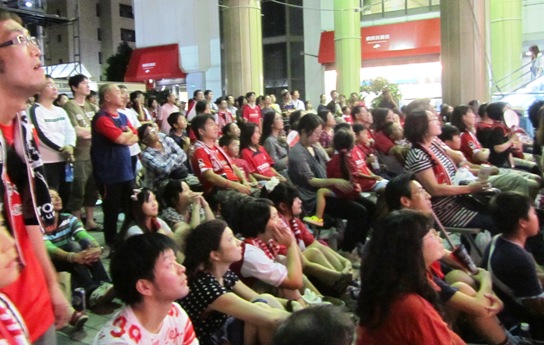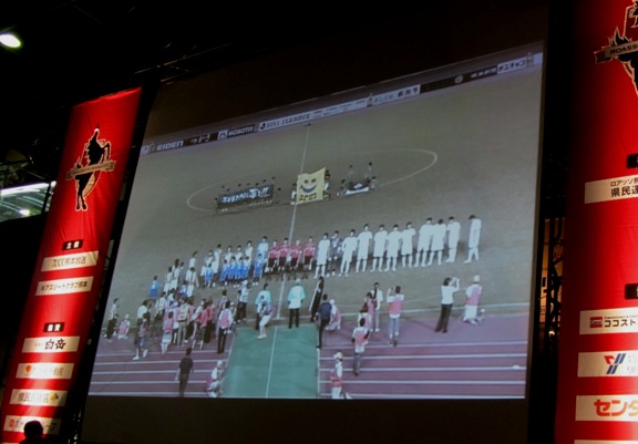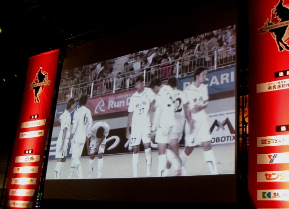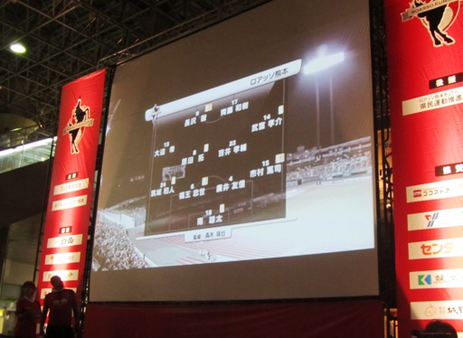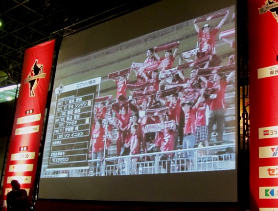 ほぼ等身大で映るゴール裏。映る度に客席からどよめきが起きるし(^^;)