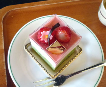 3月一杯限定の桜モチーフのイチゴムース。美味でございます♪