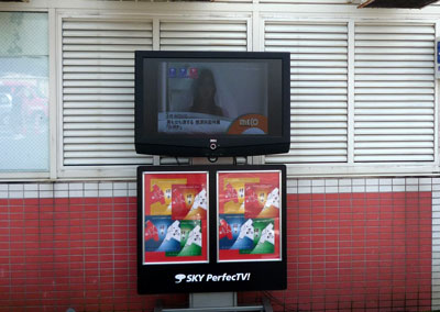 外でもPV。お酒はないけどタバコ吸いながら見られるという珍しい場所に設置。