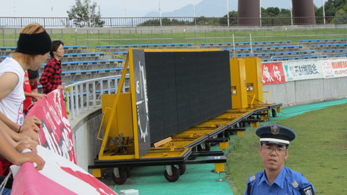 電光掲示板は移動式でアウェーサポには全く見えない仕様。ニンスタの洗礼はこれか~っ!(-_-)