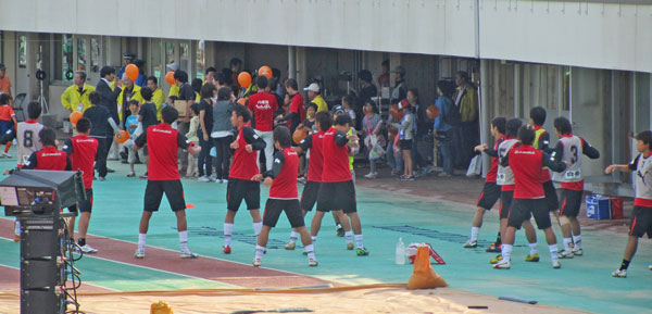 選手も準備体操?中。