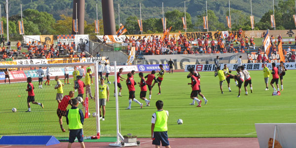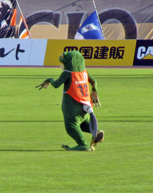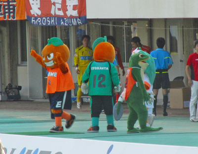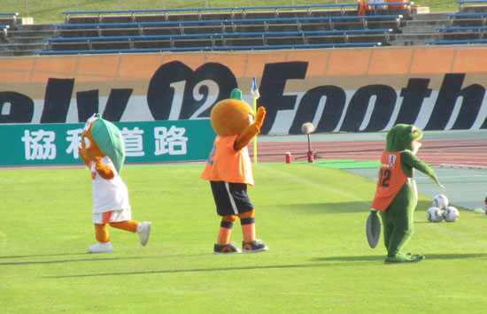 さてそろそろ試合も近づき、マスコットの皆さんがサポーターを煽りに出て参りました。