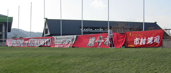 オレンジもきれいなんだけど、やっぱり赤い横断幕を見ると心が落ち着く体質なんです。