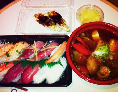 前夜祭。大好きな花まるの握りとあら汁をいただきました。