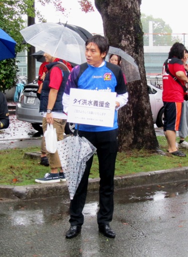 タイの洪水被害への支援をと、元ロアッソ選手で現在タイのチームでプレーしている