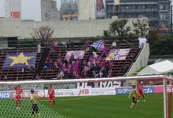 こんな状態の私たちの反対側のゴール裏では、紫色の大旗が何度も翻っていました。