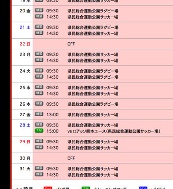 月末のTMもすでに記載されてます。練習見学だって予定がたちます。