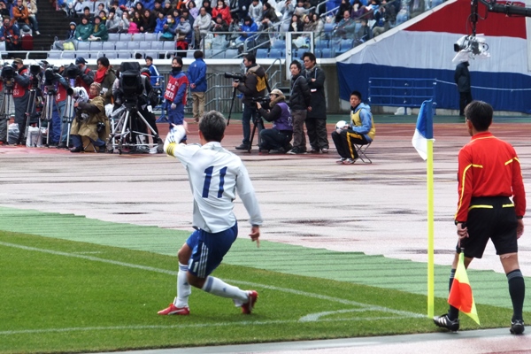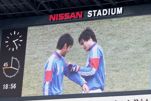 写真はブレてるけど、中村俊輔選手が天に向かって何か言っていました。