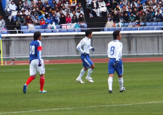 もっともっと盛り上がろうよ!とステキな笑顔でスタンドを見上げて両手でサポーターを煽ります。それに応えてスタンドも大きな歓声と拍手。