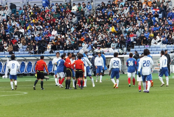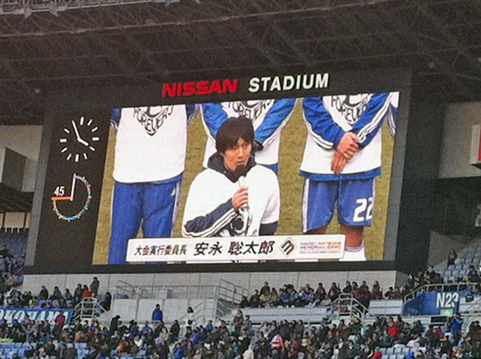 締めは今日のヒーロー安永さんの挨拶です。ここでもまた松田選手がピッチに降りて来ました(^^)