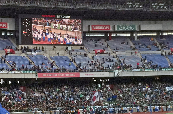 選手が一周して全員バックヤードに引き上げるまで、スタンドの大部分の人がスタンディングで呼びかけながら手を振っていました。