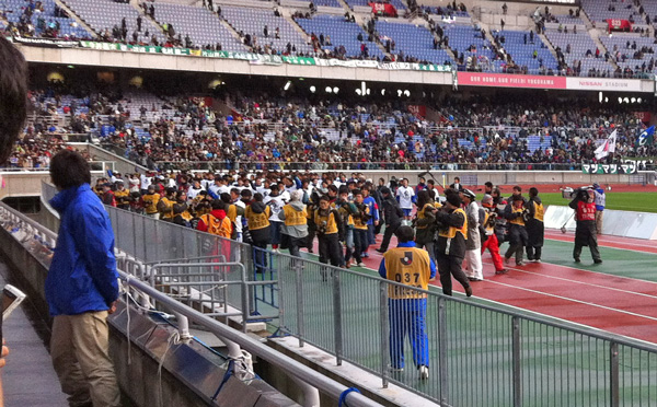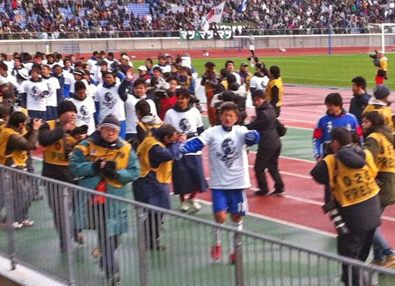 選手交代してベンチに下がったと思っていた安永さんがいつのまにやら外周を廻りながらスタンドを煽ってるんです!
