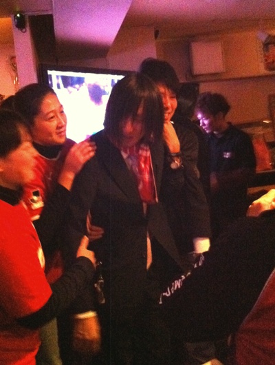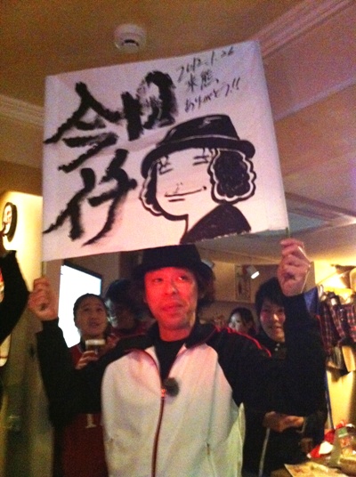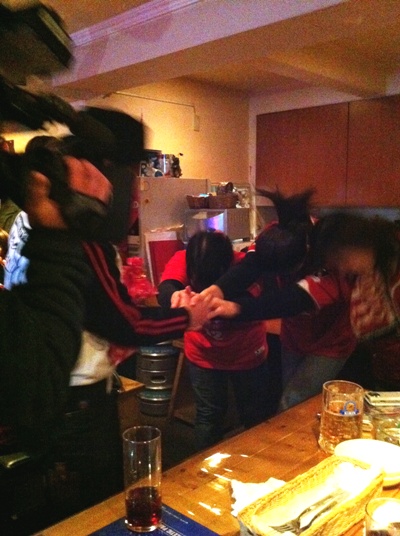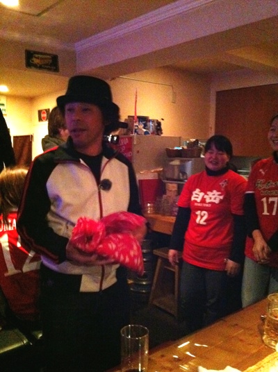 取材という名目で、かんしょやお兄さんの披露宴二次会に引き続き参加。おなじみの「G」にゴール裏サポが集結しましたよ。
