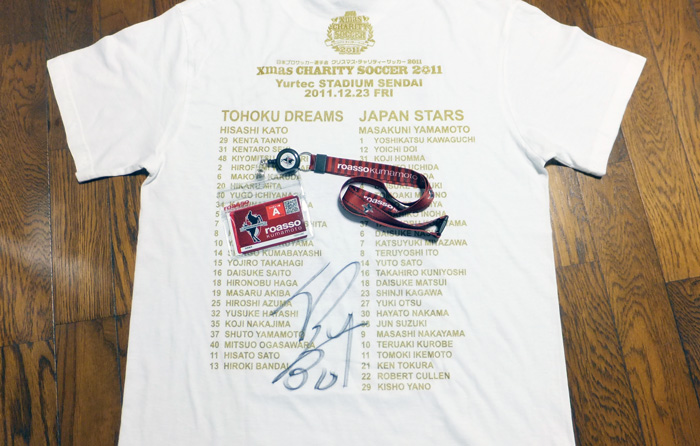 出かける直前に届いた2011クリスマスチャリティマッチサッカーのTシャツです。