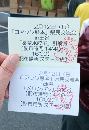 玉名名物メロンパンと薬草水餃子の引き替えチケットゲットです。