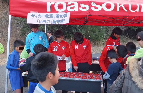 サッカー教室に参加した子供たちには玉名の苺プレゼント。