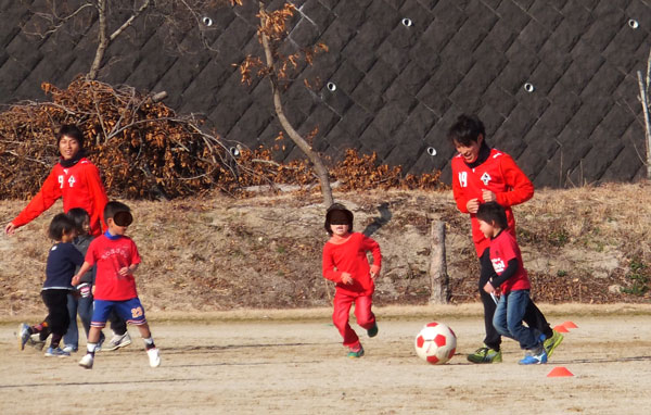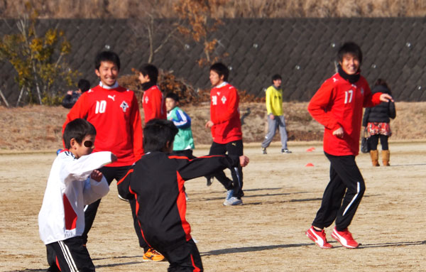 グラウンドでは子供たちが選手とサッカー。これぞロアッソ&ファン交流の醍醐味!