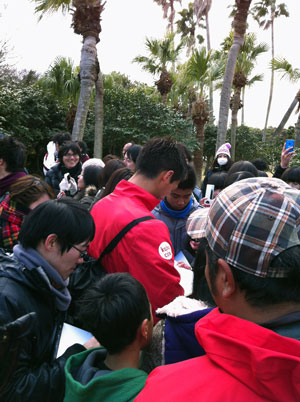 サイン責めの彼らを横目に、自分は寒風の中がんばったウチの選手たちにお疲れ様の声かけをして、本日の指宿ツアーの皆様とおもやいで買った差し入れをピンポイントでハヤトくんに「みんなで食べてくださいね」と手渡してから、そそくさとホテルに入りました。