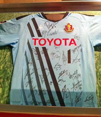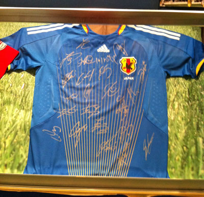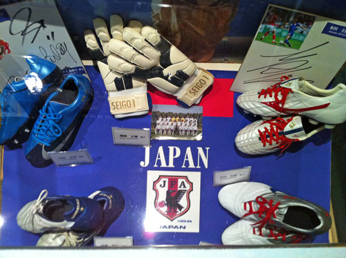 言わずもがな、いわさきホテルは日本代表もキャンプを張った由緒ある場所とて、地下のショッピングブースの一角にはこんな展示もありました。
