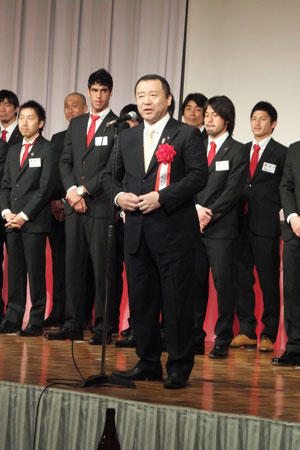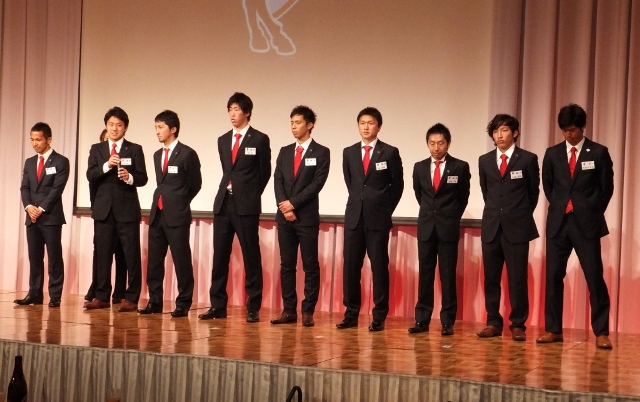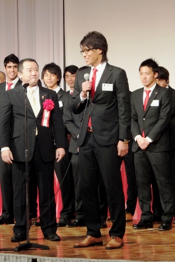 再びチームが登壇。最後の挨拶を任されたのは2012シーズンのチームキャプテン11番くんです。